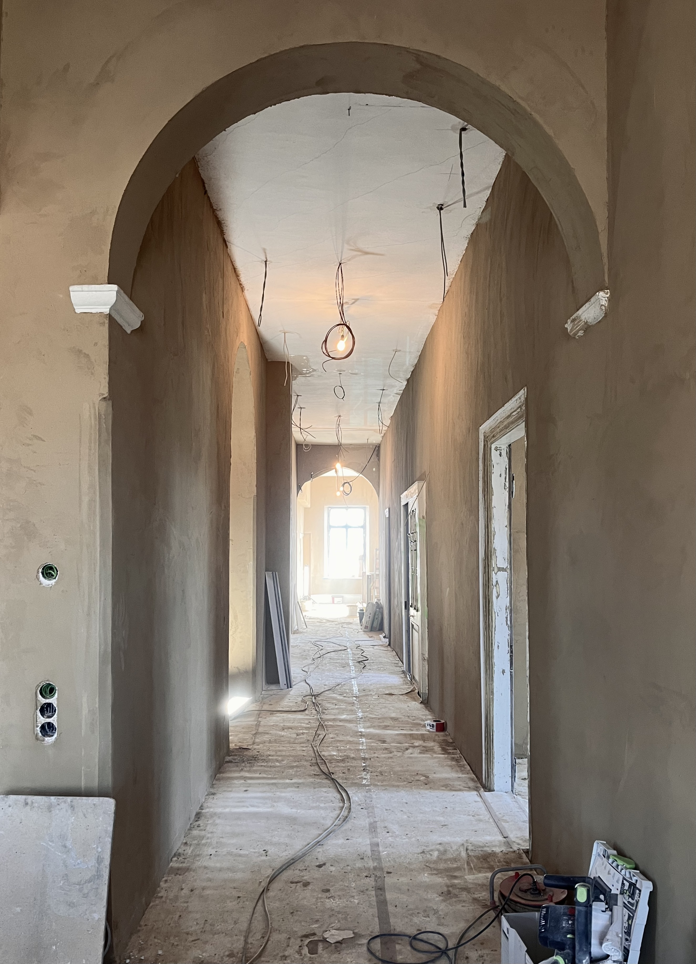 Die Sanierung des Gebäudeensembles Haus Caen geht gut voran - in kleinen Schritten, wie es sich für ein Denkmal gehört.